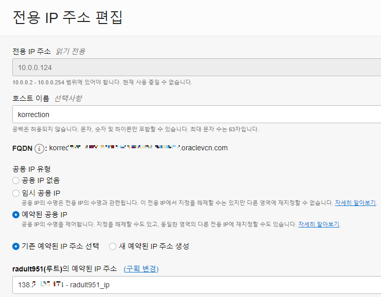 공용 IP 없음 선택 - 업데이트