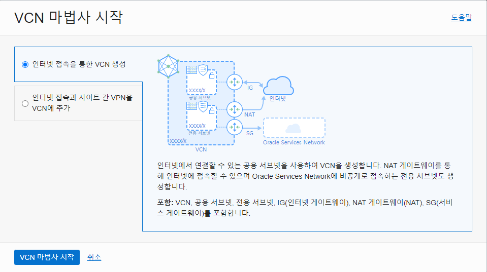 인터넷 접속을 통한 VCN 생성 - VCN 마법사 시작