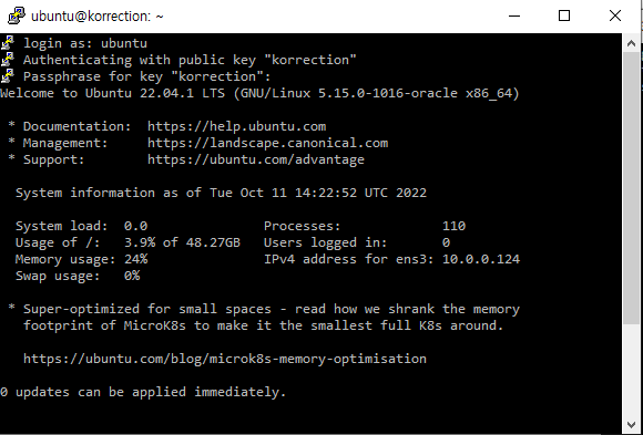 아까 인스턴스 액세스 정보에 사용자 이름을 보면 ubuntu라고 되어있었다.