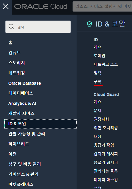 메뉴 - ID & 보안 - 구획