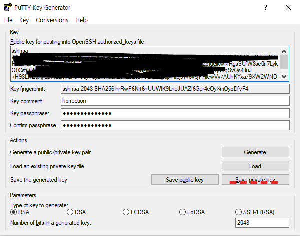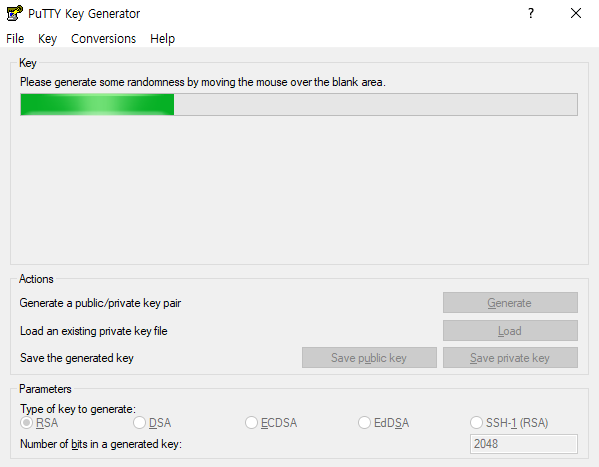 puttygen을 실행하면 아래와 같이 나온다.