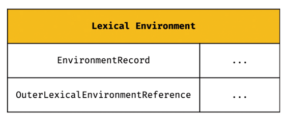 렉시컬 환경은 다음과 같이 두 개의 컴포넌트로 구성된다.