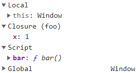 클로저인 중첩 함수 bar는 상위 스코프의 x, y 식별자 중 x만 참조하고 있다. 이런 경우 대부분의 모던 브라우저는 최적화를 통해 상위 스코프의 식별자 중에서 클로저가 참조하고 있는 식별자만 기억한다. 클로저에 의해 참조되는 상위 스코프의 변수(위의 경우 foo의 x 변수)를 자유 변수라고 한다.